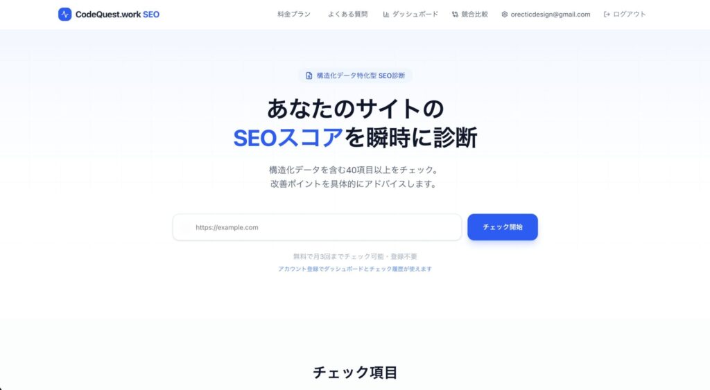 CodeQuest SEO Checkerは「ページ単位」の診断に特化しています。